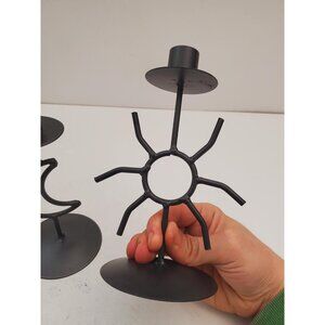 Vintage metal Moon & Sun Candle Holders | Set of 2 Celestial Fornasetti Style Candlestick Holders Vintage Moon & Star Celestial Candlestick Holders