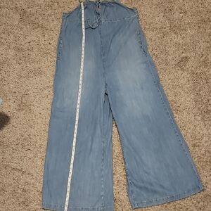 Embrace effortless style with this We The Free jumpsuit, featuring a relaxed wide leg silhouette in a classic blue hue. Crafted from soft denim, it offers a comfortable fit perfect for any occasion. Straps are adjustable to tighten or loosen as needed. Only worn a few times.