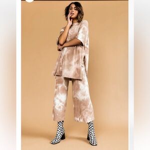 Dressed in lala Lex Ribbed Playsuit in Iced Latte Tie Dye Size large