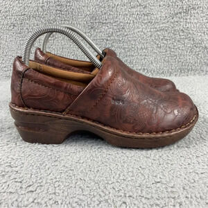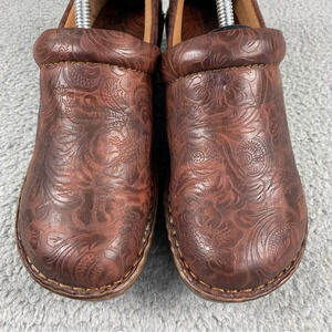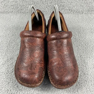 BOC Born Concept Womens Clogs Tooled Leather Floral Shoes Brown 8.5.