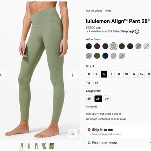 Lululemon Align Pant 28" in a stylish willow green. Perfect for yoga and casual wear.
