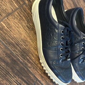 Ferragamo Mens Navy Blue Leather Sneaker