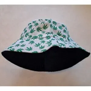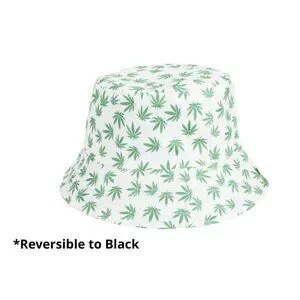 Brand New Green on White Pot Leaves Reversible Bucket Hat