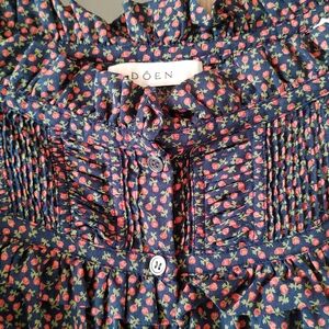 excellent condition! worn just a few times. navy blue with a dainty red floral