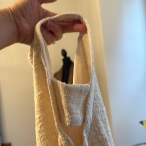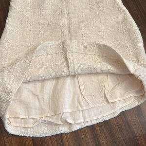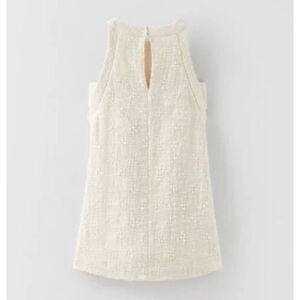 Structured round neck tank dress with pockets. Back button closure. Cut out detail.