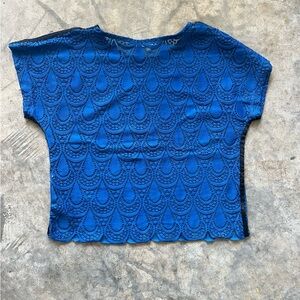 💙 Detailed Lace-like Blue Short Sleeve Knit Tee