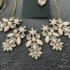 New York & Company Gold and Pink Necklace, Earrings & Bracelet Set