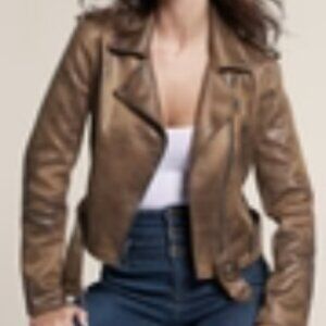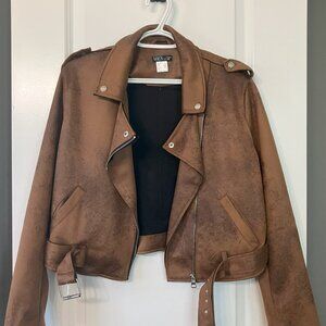 Venus Distressed Brown Faux Suede Moto Jacket – Size Large