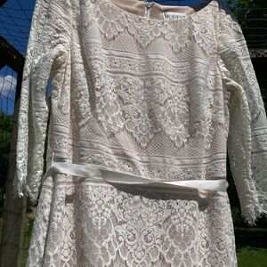 This exquisite Mon Cheri gown in a soft cream hue is designed for the bride seeking elegance and grace. Featuring 3/4 length sleeves and a simple scoop neckline, the dress flows beautifully with its full-length silhouette. The gown's delicate fabric and timeless style make it a perfect choice for a memorable wedding day.