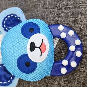NWT: This charming dog toy features a playful bear design in vibrant blue and white, perfect for engaging your pet in interactive play. Crafted from durable materials, it ensures long-lasting fun and withstands even the toughest chews. The toy's cheerful appearance is sure to delight your furry friend.