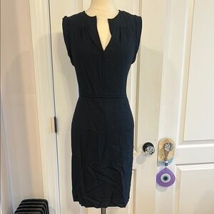This elegant black sleeveless dress is perfect for any occasion. Its sleek design offers a timeless look. It is in very good condition! Just needs to be ironed.
