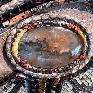 Unique Vintage Raven Works studio deerskin leather, fur and snake skin shoulder bag. Excellent condition and beautiful detail!