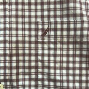 This Nautica shirt features a classic brown and white checkered pattern, perfect for adding a touch of style to your casual wardrobe. Made from lightweight material, it offers comfort and versatility for various occasions. The traditional cut and standard collar make it a timeless piece for any collection.