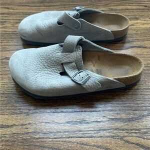 Boston Clog in Nubuck Leather - Whale Gray. Size EU 42 - Men’s 9-9.5 They are very likely worn and I love them except I need to order a 41 as they’re a tiny bit too big. Had only worn them with socks around town - had not worn them in rain, or at beach.