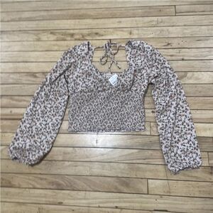 BLOOMFIELD Long Sleeve Crop Blouse Puff Sleeve Peach Floral Smocked Bloom NEW XL