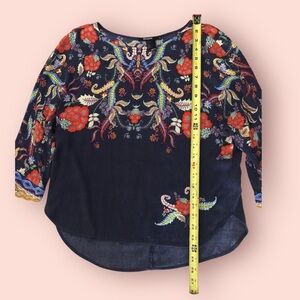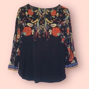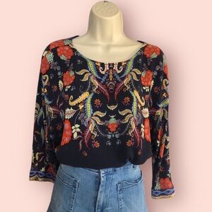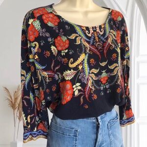 DESIGUAL Bohemian Floral Paisley 3D print Small Top Blouse 3/4 sleeve Black