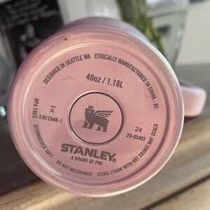 Stunning 40oz Stanley with straw. One minor/hard to see scuff (pictured) and minor mark on bottom from use. Dishwasher safe. Purchased from Target. Used less than a handful of times due to having too many tumblers. Running out of room to store. Great condition like new!