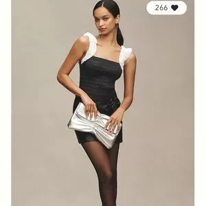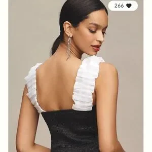 Anthropologie Black Smocked Top with White Ruffle Straps