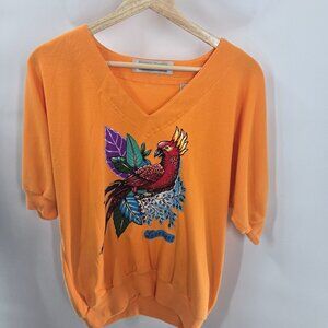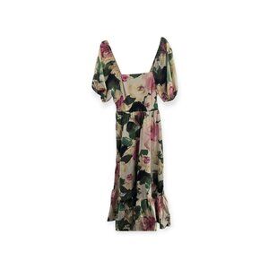 Havana Jack's Cafe Green Floral Crop Front Tie Retro Rayon Button Down Top XL