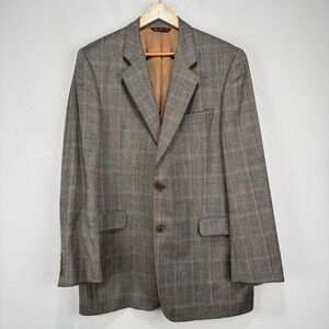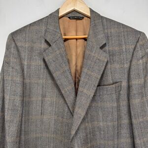 Loro Piana Cashmere Sport Coat Blazer Men 44L Gray Beige Check Manzoni 2 Btn