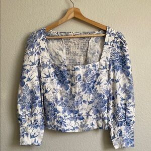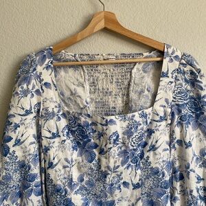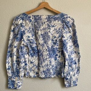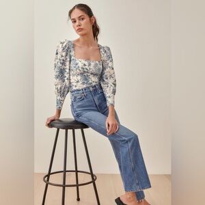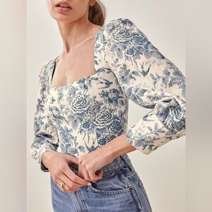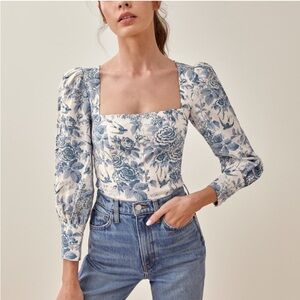 Reformation Linen Stilton Floral Romantic Square Neck Long Sleeve Top Size 10
