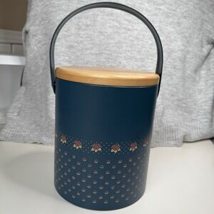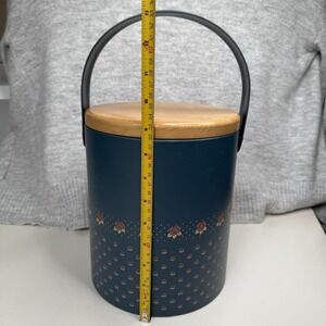 Vintage Georges Briard Ice Bucket Blue Floral Vinyl Handle with Lid Summer Party