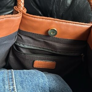 This elegant brown tote bag showcases a beautifully woven leather design, providing a textured and stylish appearance. Its spacious interior and durable handles make it an ideal choice for both everyday use and professional settings.