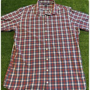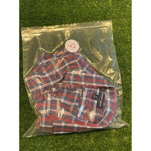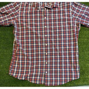 Mizzen+Main shirt mens extra large red blue leeward trim lightweight plaid 42