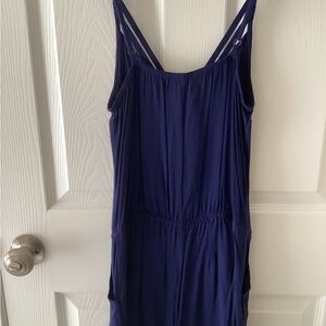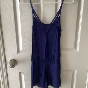 Stylish navy blue/purpley romper by Express. Features a sleeveless design with a relaxed fit. Perfect for casual outings.