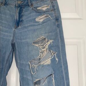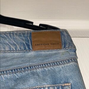 Women’s 8 Short - American Eagle Light-Wash Distressed Jeans; Low Rise Skater