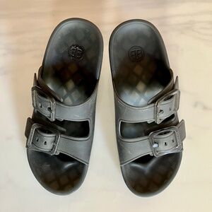 The Balenciaga Mallorca Sandals in Black size 40 feature a 3" stiletto heel and a buckle closure for a stylish and secure fit. Made of polyurethane, these sandals are designed for women with a UK shoe size of 7.5 and a US shoe size of 9.5. The slide style offers a comfortable and trendy option for any outfit, making them a versatile addition to any wardrobe. The renowned Balenciaga brand ensures quality and sophistication in every detail of these chic sandals. Excellent condition as shown in the photos.