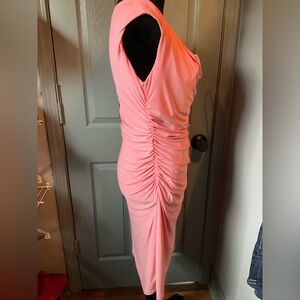 Sharagano size 6 pink dress with ruching and cap sleeves
