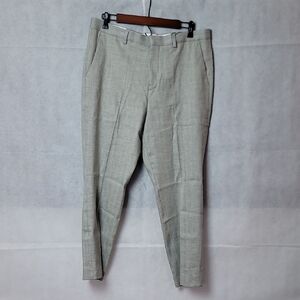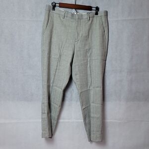 These Express dress pants in a sophisticated gray hue offer a polished look with their flat-front design and straight leg cut. Crafted from a subtly textured fabric, they are perfect for formal occasions or professional settings. The versatile color ensures easy pairing with a variety of tops and shoes.