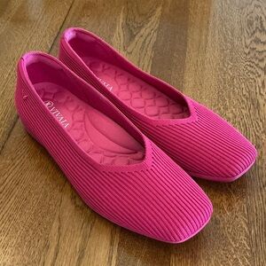 Woman’s Rothy’s The Flat in black in size 6.5. Removable inner sole. Machine washable. Black rubber bottom sole. Barely worn! Perfect for summer!