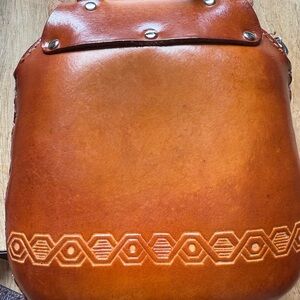 Unique brown leather crossbody bag with a fox design. Features adjustable strap and detailed craftsmanship.