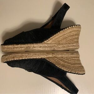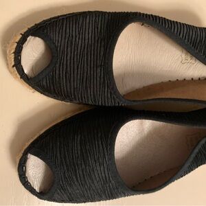 Vera Pelle Black Espadrilles with Elastic Straps and Rounded Peek Toe 6 1/2