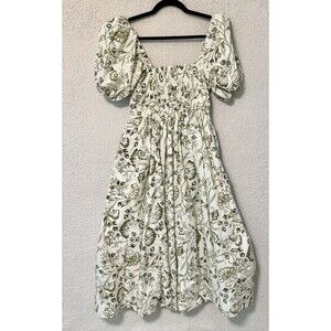 The Abercrombie & Fitch Emerson Poplin Puffy Sleeve Midi Dress in Moss Green is a charming and versatile piece perfect for various occasions. This petite-sized dress features a square neckline, puff sleeves, and a ruched, smocked design that exudes a cottagecore aesthetic. Made from a comfortable cotton blend material, this A-line dress is ideal for summer and spring events, whether it's a wedding, party, or casual outing. The dress is lined and accented with pleats, adding a touch of elegance and refinement to your wardrobe.