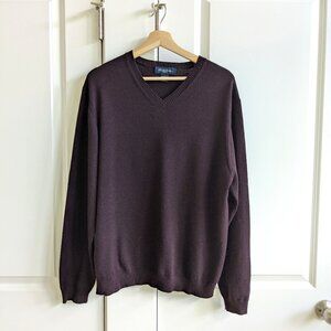 Brooks Brothers Sweater Men L Burgundy Merino Wool V Neck Pullover Knit Jumper