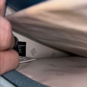 Kate Spade blue frost clutch features a sleek envelope design with a shimmering glittery finish, perfect for adding a touch of glamour to any occasion. Its structured shape and metallic sheen make it an eye-catching accessory for festive events. NWT