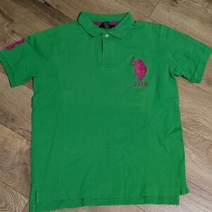 U.S. Polo Assn. Big pony polo Green Hot Pink Men's shirt Sz Medium