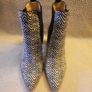 Oasis Society Esmee Black/White Faux Fur Patterned Chelsea Booties - Size 7.5