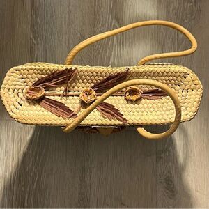 Straw Wicker 60s 70s Vintage Woven Large Dual Handle Yarn Floral Yarn Tote Bag