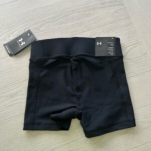 These Under Armour athletic shorts in black offer a sleek, form-fitting design perfect for workouts. Featuring a wide elastic waistband and moisture-wicking fabric, they ensure comfort and performance during any activity.