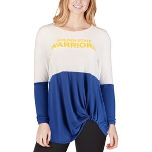 Brand new with tags. Game day couture brand. Size medium. Color gold ivory white and grey. Long sleeve tunic top. Color block. Authentic NBA gear. Embrace a relaxed and sporty look with this NBA Warriors top, featuring a stylish tie front detail. The long sleeves and tunic style offer a comfortable fit, perfect for casual outings or showing team spirit. Crafted with a soft fabric, this top ensures both comfort and style. Similar stock image to show style and fit. Never worn.
