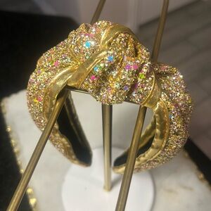 Add sparkle to your look with this stunning gold glitter headband. Perfect for any occasion.