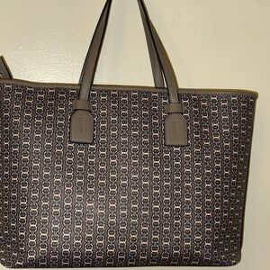Tory Burch Tan and Black Tote Bag with Monogram Pattern