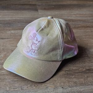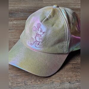 Disney Parks Walt Disney World 50th Anniversary Pink Iridescent Mickey Hat. No major flaws, very small scuffs on the underside of the brim. Tag has been cut off. Good used conditon. Please refer closely to photos for condition and measurements