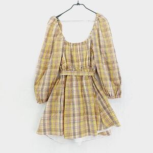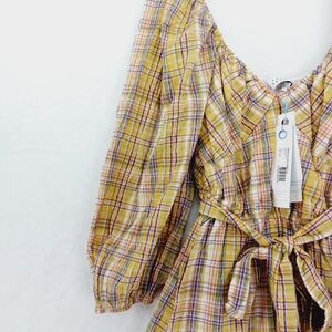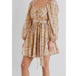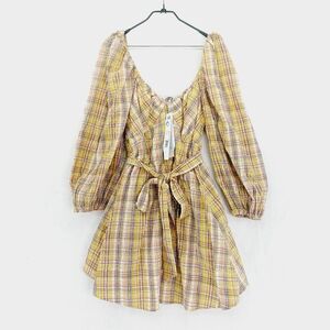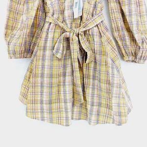 New Tanya Taylor Women's Yellow Xena Plaid Tie-Waist Long Sleeve Dress P5164