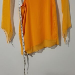 Bright orange mini dress. Long sleeves. Perfect for a bold look. See more photos for measurements, fabric contents, and care for instructions. Smoke-free home.