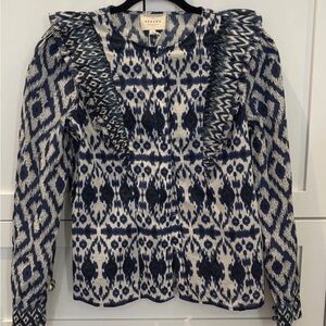 Sezane Blue Ikat Boby Blouse Size 2 $125